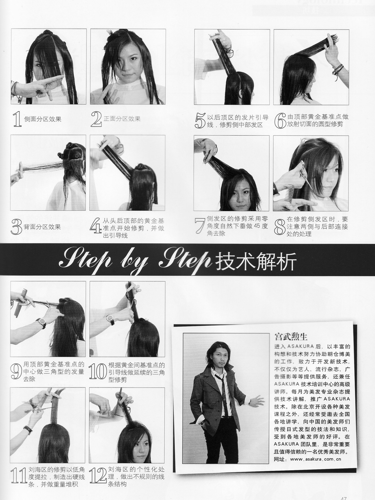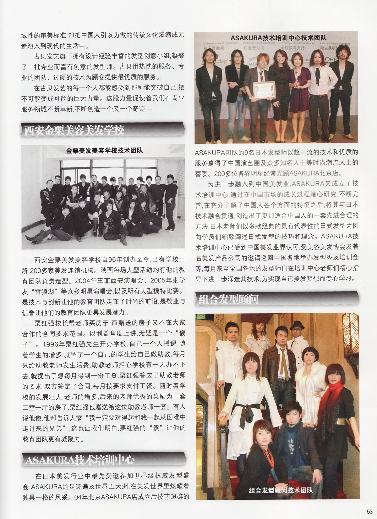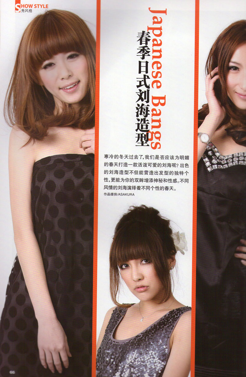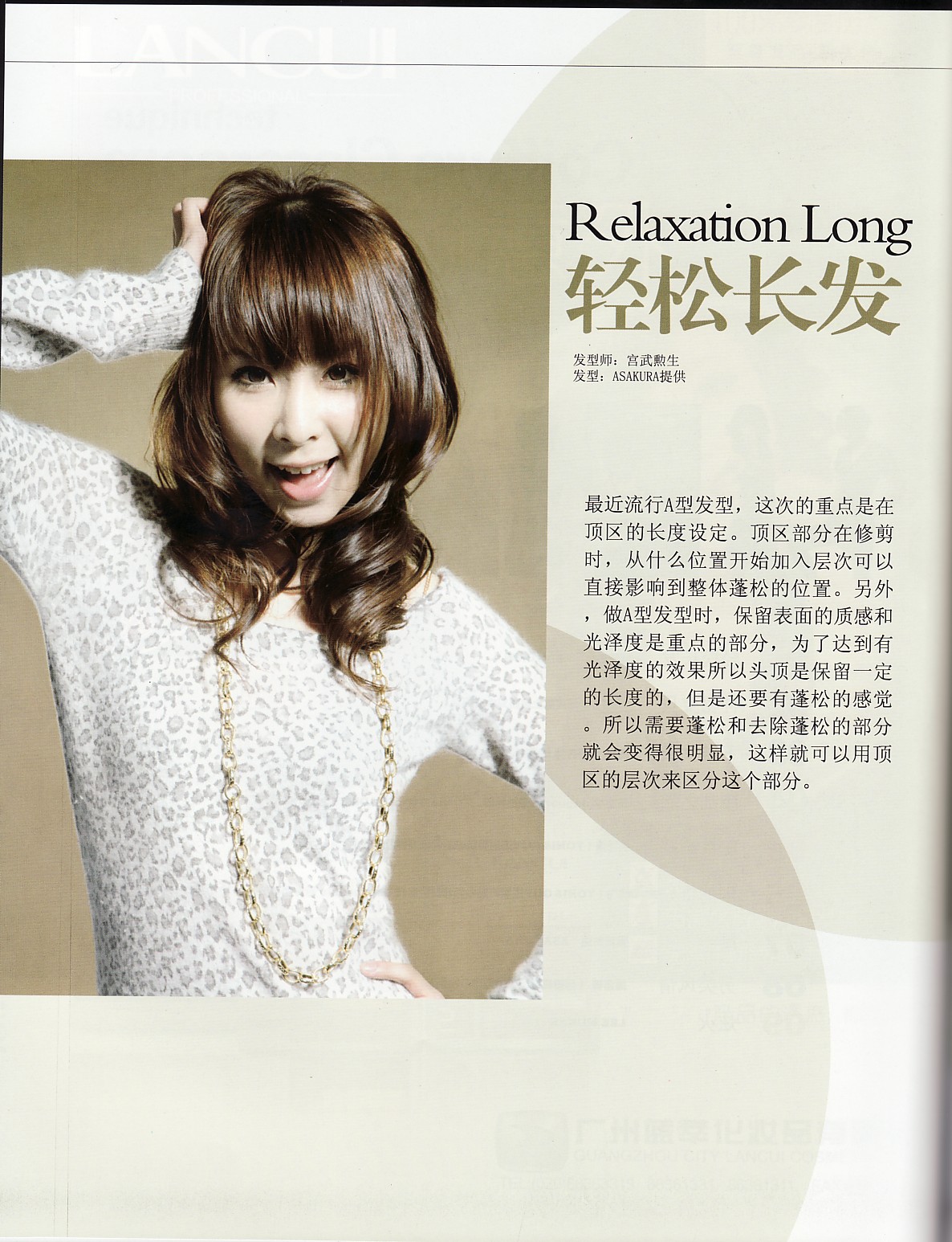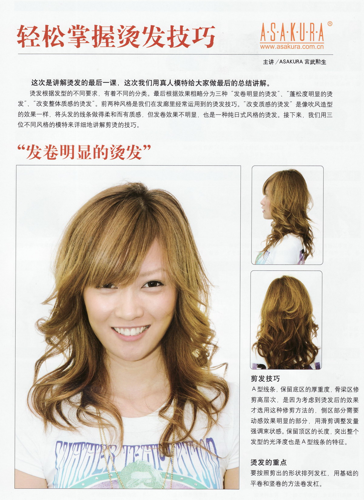 | 将日式发型技术真正的带给中国的美发师朋友们,ASAKURA老师们每月都挤出时间来,精心准备技术讲解,给各美发杂志提供技术资料,借助众多美发行业杂志平台与中国美发师们交流,带给中国清新自然的日本风!从04年起就给美业,美容美发等专业杂志一期不落地提供技术资料。目前为止每月ASAKURA培训中心给《美业》,《美容美发》,《翡仕》,《丝艺》,《彩》,《飘》,《现代沙龙》,《FM》,《TOP》等国内优秀美发杂志提供技术资料及发型作品。 |